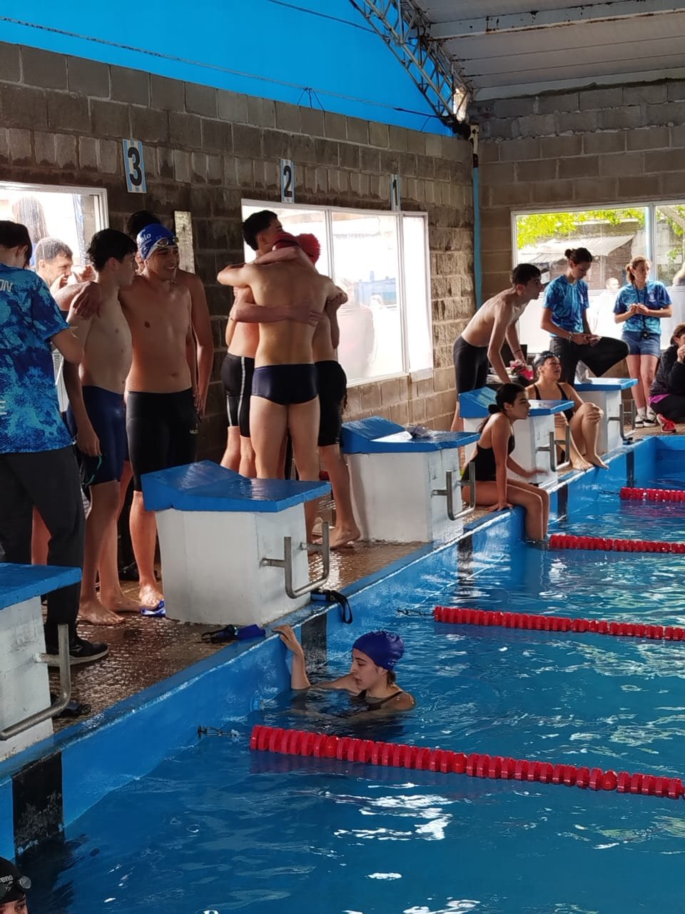 El intendente Alberto Gelené; el secretario de Deportes y Cultura, Fernando Muñiz; el director general de Deportes, Recreación y Juventud, Favio Folini; y demás autoridades recibieron a la delegación en el Natatorio Climatizado Municipal “Hugo Mauro”, donde se desató el festejo con familiares y amigos.
