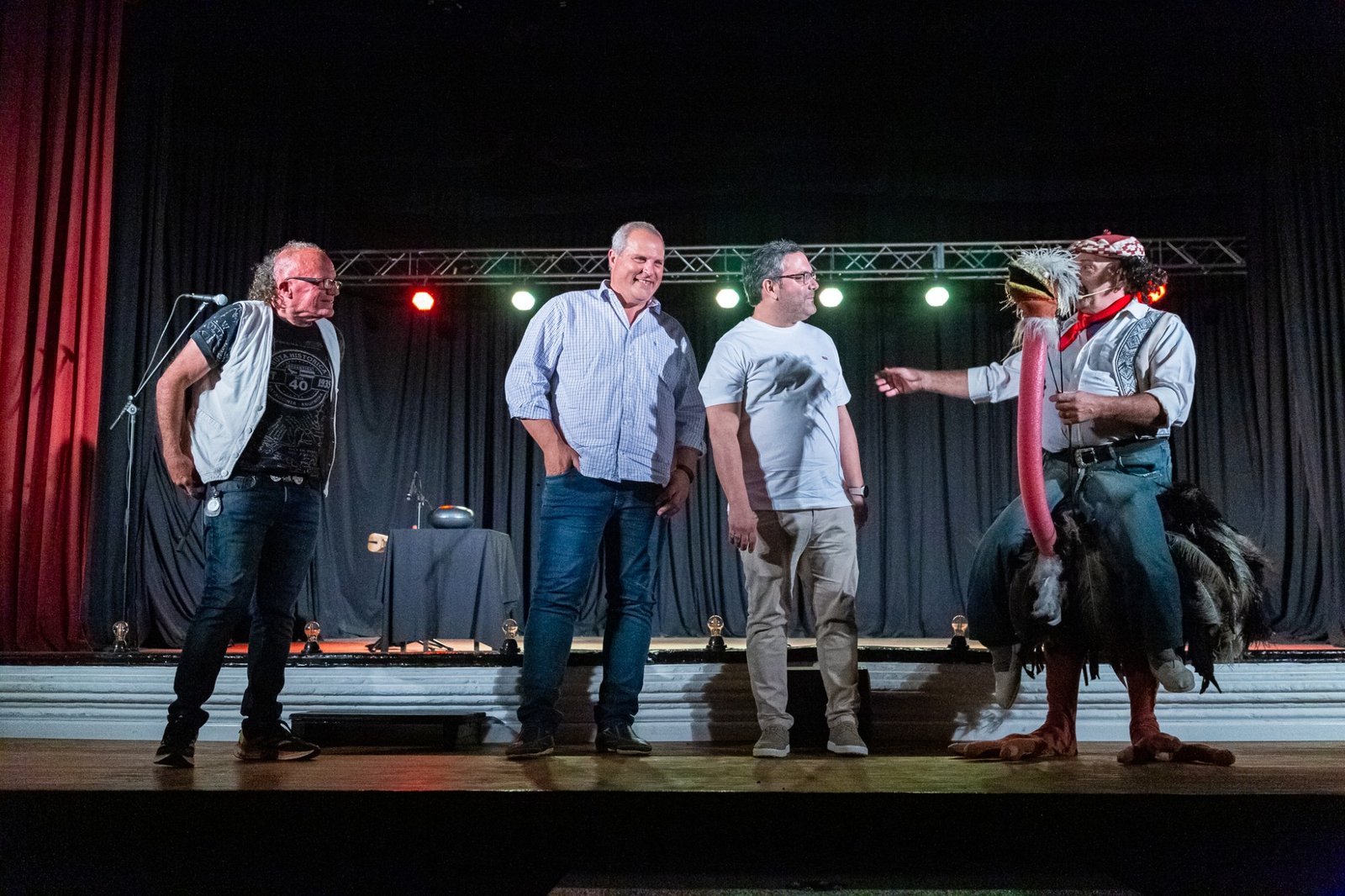 Además, el humorista, recordado por sus grandes actuaciones en televisión en el programa ShowMatch de Marcelo Tinelli, supo interactuar muy bien con el público. Del mismo tenor fueron las actuaciones de sus colaboradores en el escenario, lugar donde mostraron todo el profesionalismo en los que estos actores se amparan en sus recorridos por distintos escenarios del país. Los aplausos también fueron para el músico Miguel Rausch y el titiritero Sebastián González.