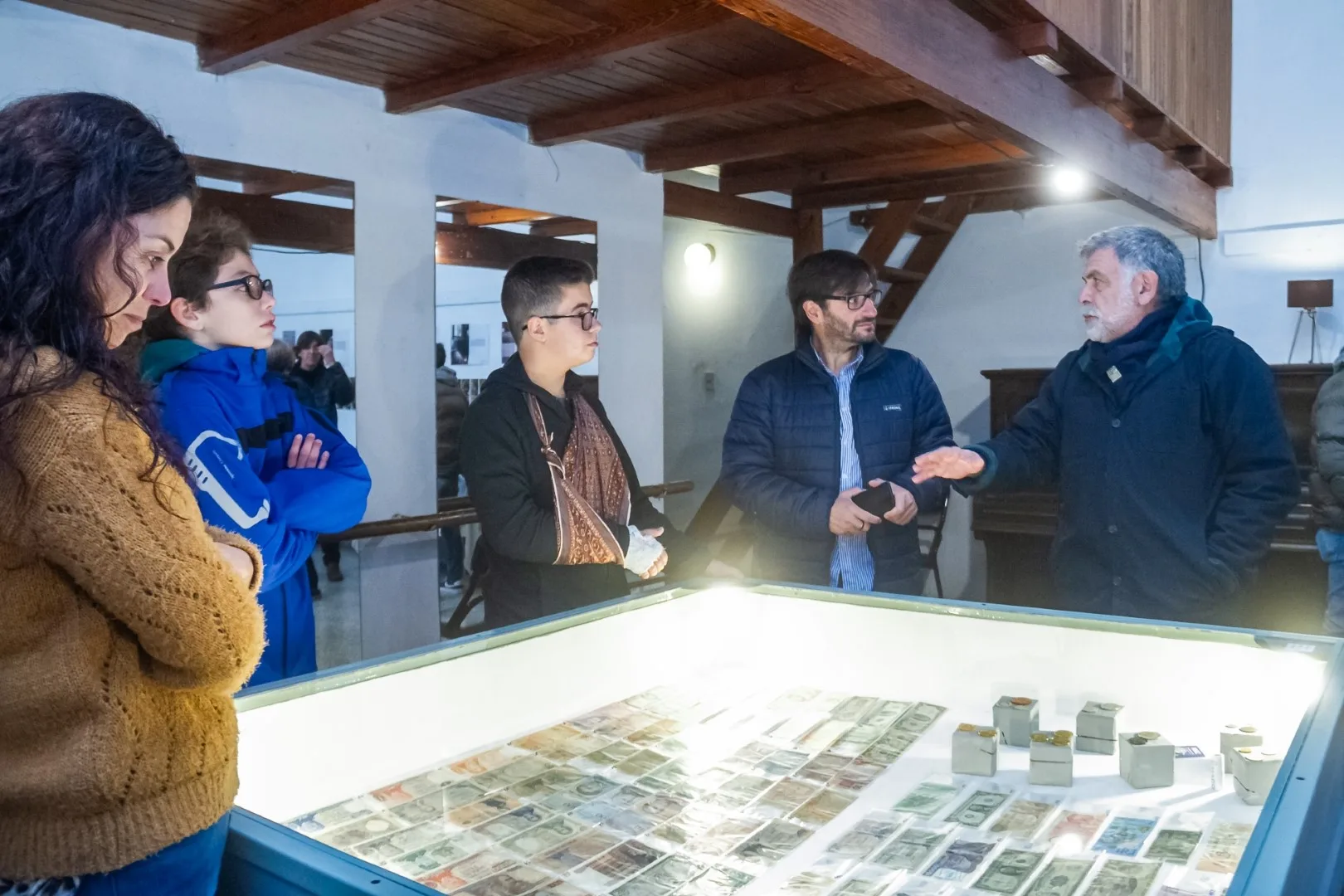 Valeria Salum expuso un brillante trabajo con soportes de fotografías y videos referidos al inicio de los prostíbulos en Las Flores y en la provincia de Buenos Aires, cuando estaban reglamentados por ley. El joven Mateo Casey exhibió también más de cien billetes y monedas demostrando su pasión por la colección numismática.