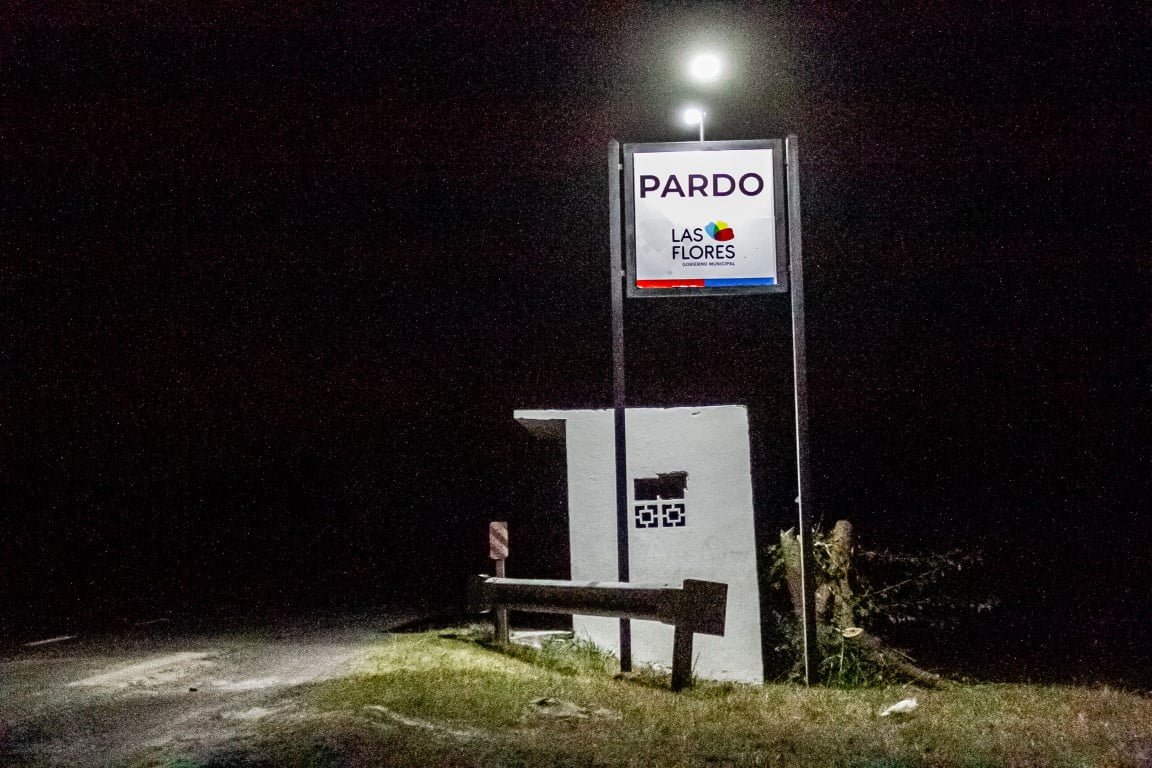 Días pasados se estuvo trabajando en el paraje de Pardo donde se colocó un nuevo cartel identificador en la entrada al paraje, iluminado con luces de led solares. En el mismo ingreso se reacondicionaron las dos dársenas donde están las letras de Pardo y también se iluminaron con led solares. Por otro lado, en la calle principal de Pardo y en la estación de trenes, se instalaron luminarias que fueron retiradas de la ciudad de Las Flores y reacondicionadas a nuevas para ser colocarlas en distintos sectores de la ciudad y de los parajes rurales.