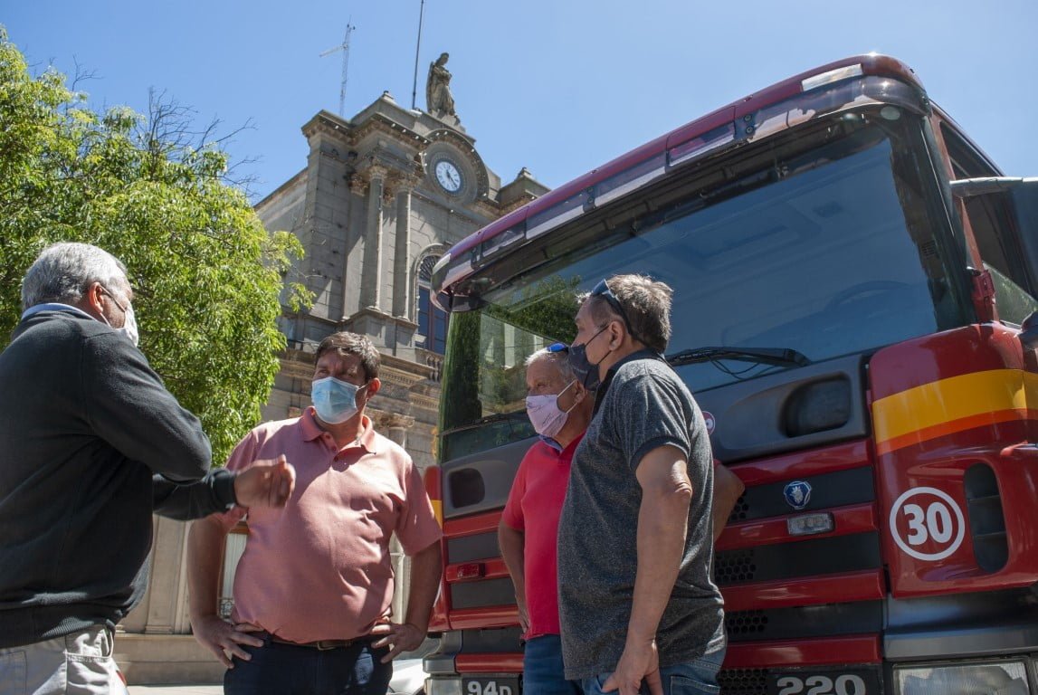 Esta mañana el Intendente Int., Prof. Fabián Blanstein recibió a los integrantes de la Asociación de Bomberos Voluntarios Las Flores quien adquirieron una nueva unidad para el cuartel de Bomberos, se trata de un camión cisterna Marca Scania 220 con una capacidad de 14.000 litros de agua.