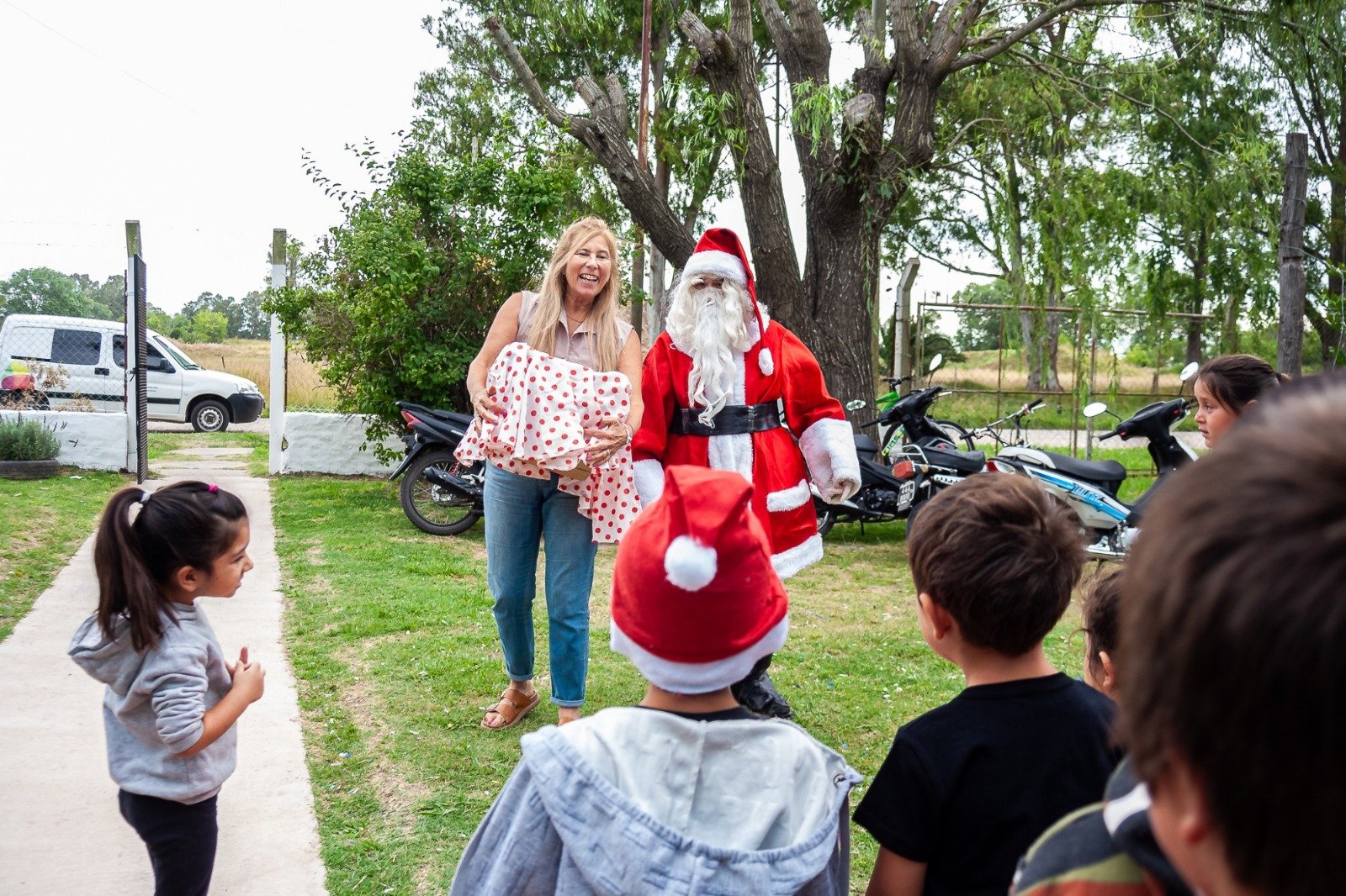 En la recorrida, los chicos le entregaron cartas de buenos deseos y recibieron regalitos.