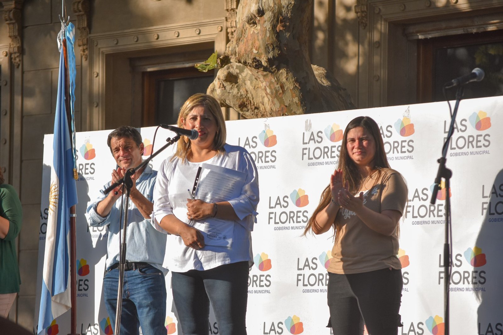En el escenario montado frente al Palacio Municipal, donde estuvo presente el intendente Alberto Gelené, los directivos del Centro nativista que preside Natalia Cabrera, y demás autoridades, saludaron a los participantes de esta Fiesta Nacional que contribuye a mantener viva las raíces de nuestra tierra y que caracteriza el sentir de nuestro distrito desde el punto de vista cultural y turístico.