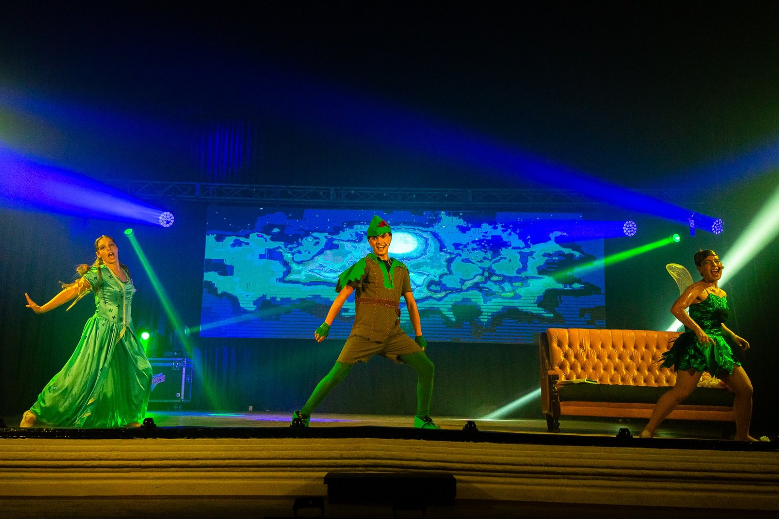 Noche brillante, envuelta en emociones y aplausos en la histórica sala del Teatro Español de nuestra ciudad con la presentación de “Peter Pan, la Tierra Perdida”.