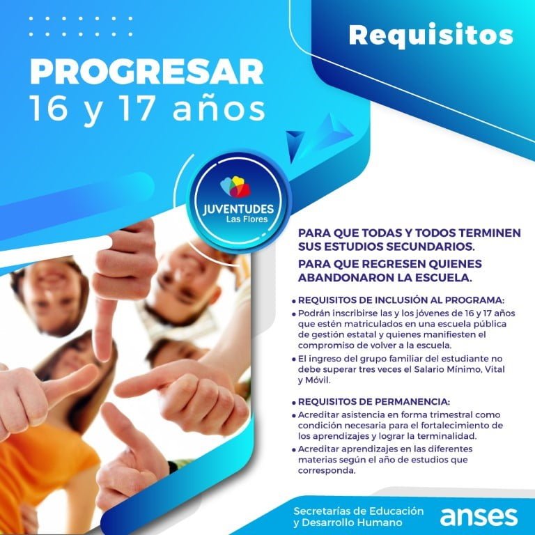 Las Secretarías de Desarrollo Humano y Educación, a través de ANSES propician el Plan Progresar para culminar los estudios secundarios. Para que regresen quienes abandonaron la escuela.