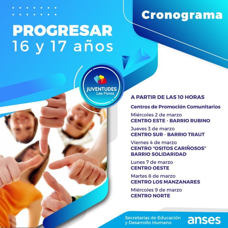 Por tal motivo las secretarías con la colaboración del área de juventudes visitarán los Centros de Promoción Comunitarios con el siguiente cronograma: