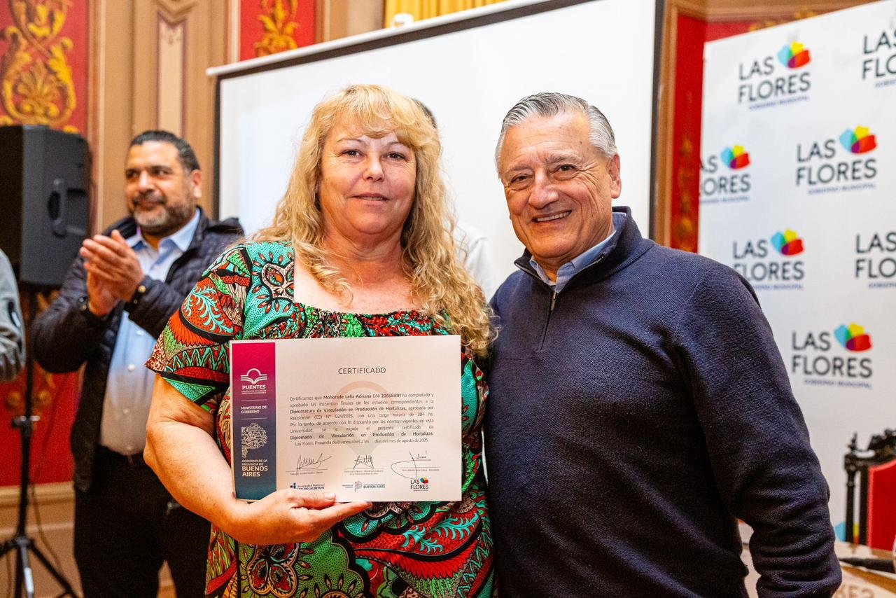 En el Salón Rojo del Palacio Municipal se llevó adelante una importante jornada que vincula la educación y el trabajo: se desarrolló la Charla Informativa de la Diplomatura en Comunicación y Comercialización de Proyectos Productivos, y se hizo la entrega de certificados de la Diplomatura de Vinculación en Producción de Hortalizas, ambas propuestas de la Universidad Nacional Arturo Jauretche.