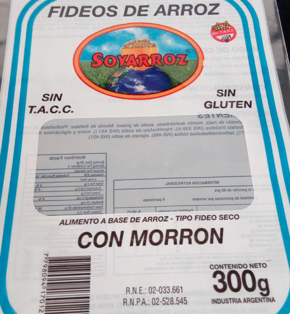 GLUTEN. RNPA 02-533099. NOMBRE DE FANTASÍA: FIDEOS DE ARROZ. - ALIMENTO A BASE DE SOJA CONDIMENTADA PASTEURIZADO – LIBRE DE GLUTEN.