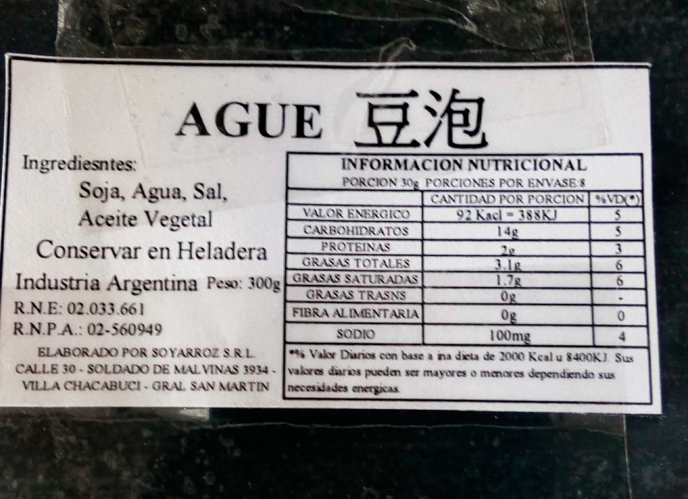 RNPA 02-0511633. NOMBRE DE FANTASÍA: TOFU SECO CONDIMENTADO. - NATA DE SOJA. RNPA: EX 2906-15837/09.