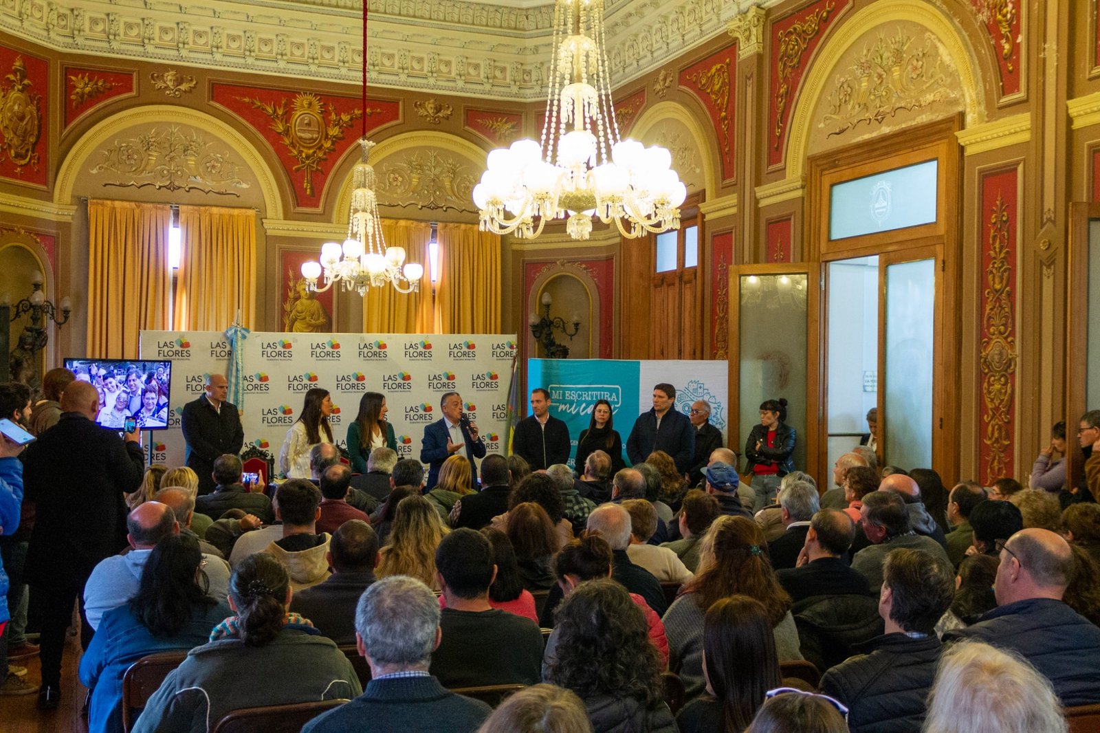En un día histórico y sin precedentes para Las Flores, en la mañana de este miércoles 20 se realizó la entrega y firma de escrituras de más de 400 familias e instituciones florenses, un avance que se traduce en poder seguir llevando adelante acciones en materia de hábitat y desarrollo urbano en beneficio de los vecinos.