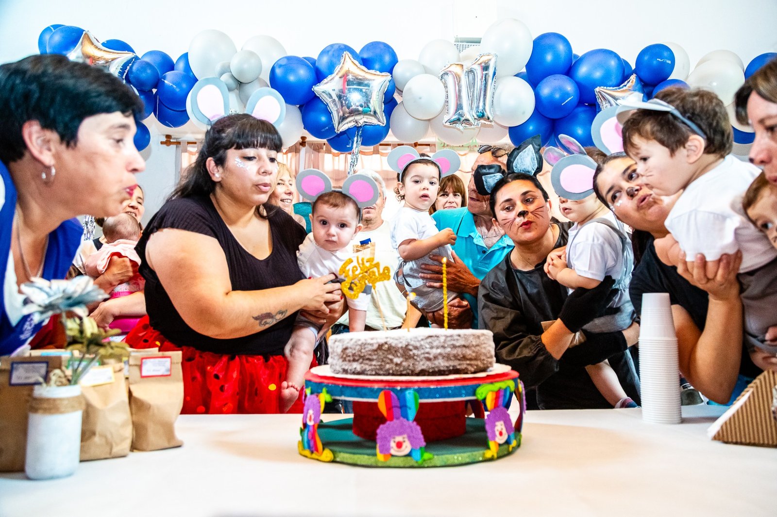 Luego junto a las familias y los niños, se cantó el tradicional feliz cumpleaños.
