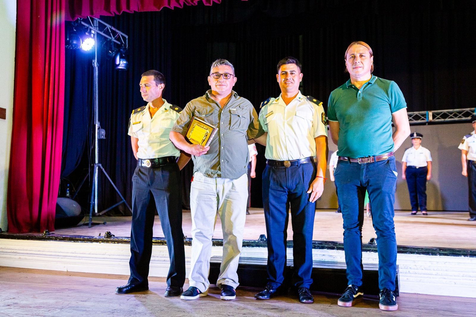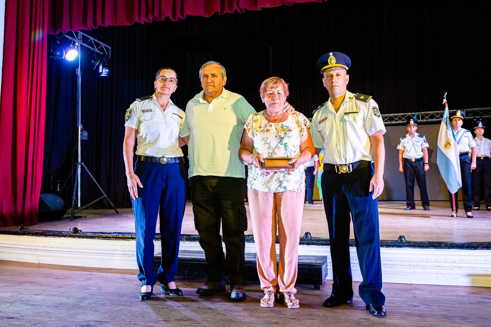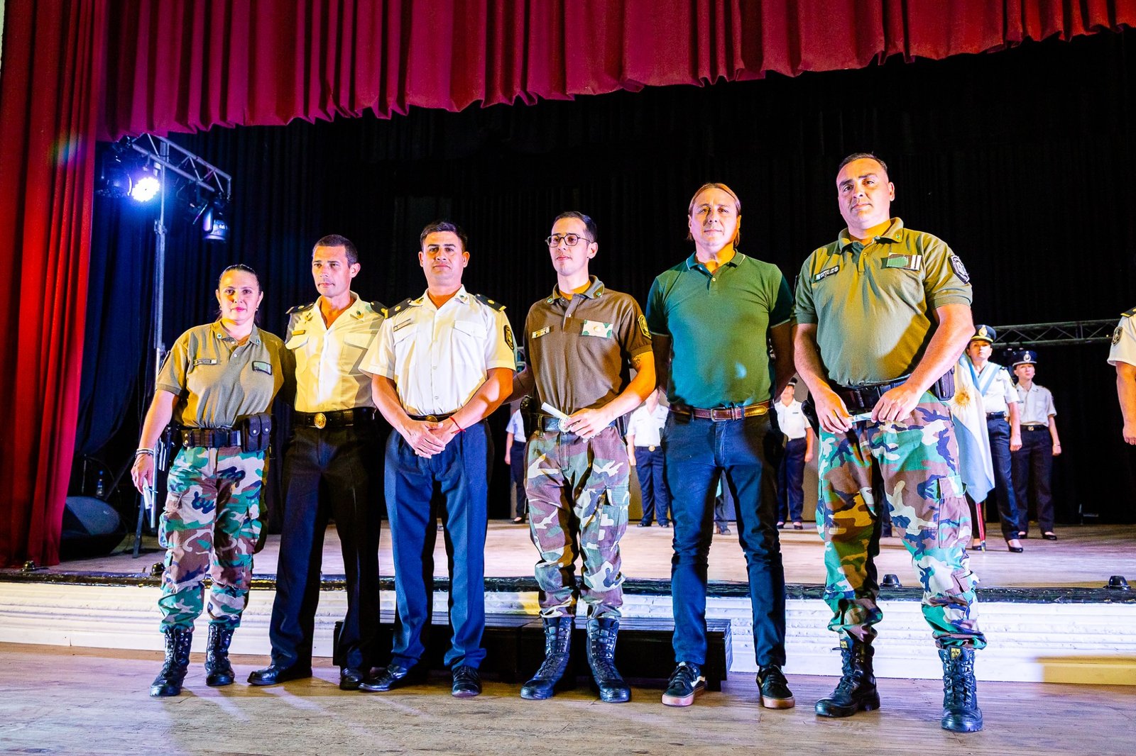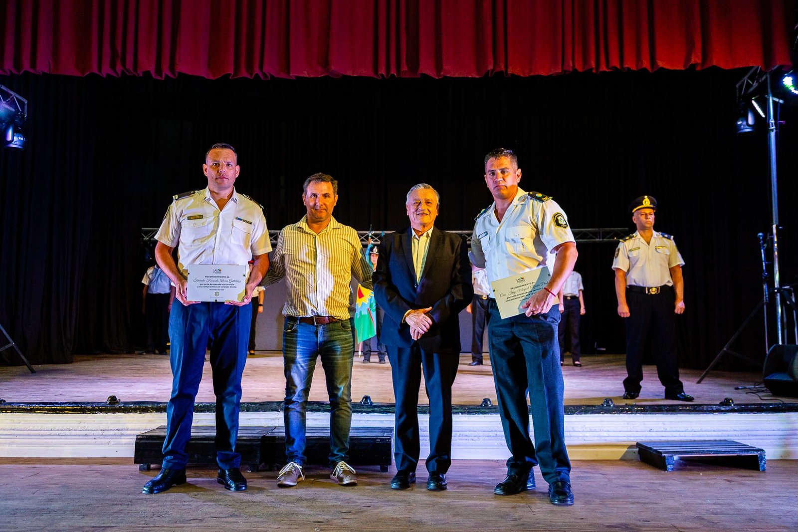 El Teatro Español reunió a autoridades, jefes de las diferentes dependencias y a efectivos. El inicio tuvo lugar cuando el intendente Alberto Gelené concedió la autorización para el comienzo del Acto tras la solicitud realizada por el Jefe de Línea.