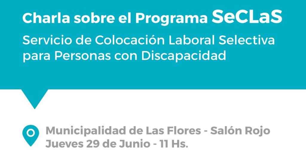 La Secretaría de Desarrollo Humano en conjunto con la Delegación Las Flores del Ministerio de Trabajo de la provincia de Buenos Aires invitan a la Charla sobre el Programa SeCLaS – Servicio de Colocación Laboral Selectiva para Personas con Discapacidad-. Será el jueves 29 de junio a las 11 horas en el Salón Rojo del […]