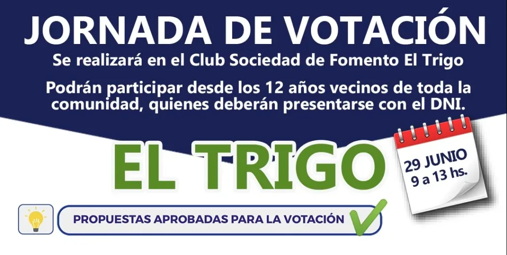 Presupuesto Participativo: El sábado 29 se realizará la jornada de votación en El Trigo