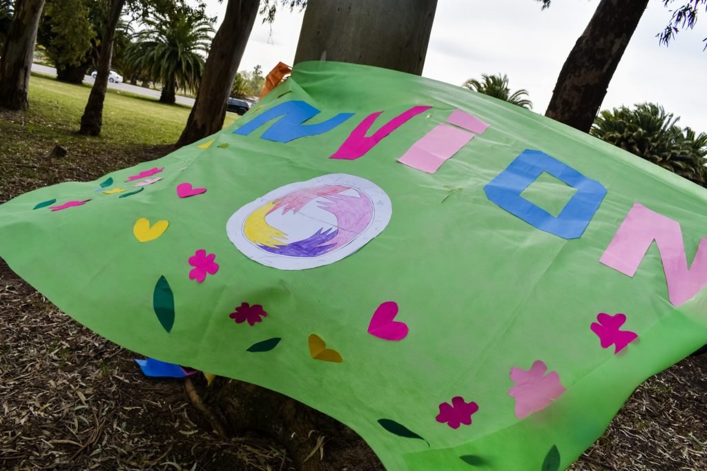 Alumnos y profesores del Programa de Responsabilidad Social Compartida ENVIÓN que depende de la Dirección de Niñez y Adolescencia realizaron una visita a Mapa Espacio de Arte. Durante la recorrida realizaron actividades y fueron guiados por las instalaciones por las artistas plásticas María José Montórfano e Italia De Meo.