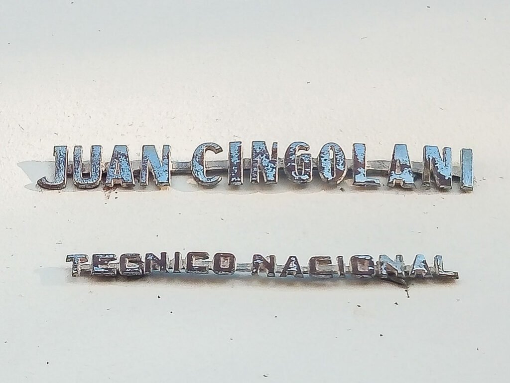 Las letras de hierro, con su respectivo soporte, con la leyenda Juan Cingolani – Técnico Nacional, lucen ahora en lo alto en la cara posterior del monolito que, altivo, se ubica de frente también hacia el sector de calle Pueblos Originarios.