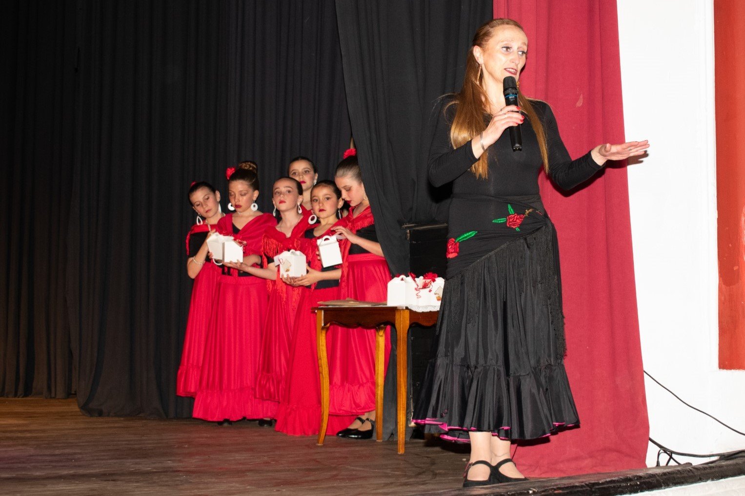 El cierre del lindo espectáculo estuvo a cargo del grupo de Danzas Españolas España Cañí. La profesora Andrea Torqui, que desde hace más de tres décadas lidera el Taller de esta disciplina, agradeció al público, a sus colaboradores incondicionales, a su familia, al intendente Alberto Gelené por su apoyo constante a la actividad y a Aldo Valente por trabajar en pos del desarrollo del Teatro Español, como así también por haber participado en uno de los cuadros de baile, pero como cantante tenor.