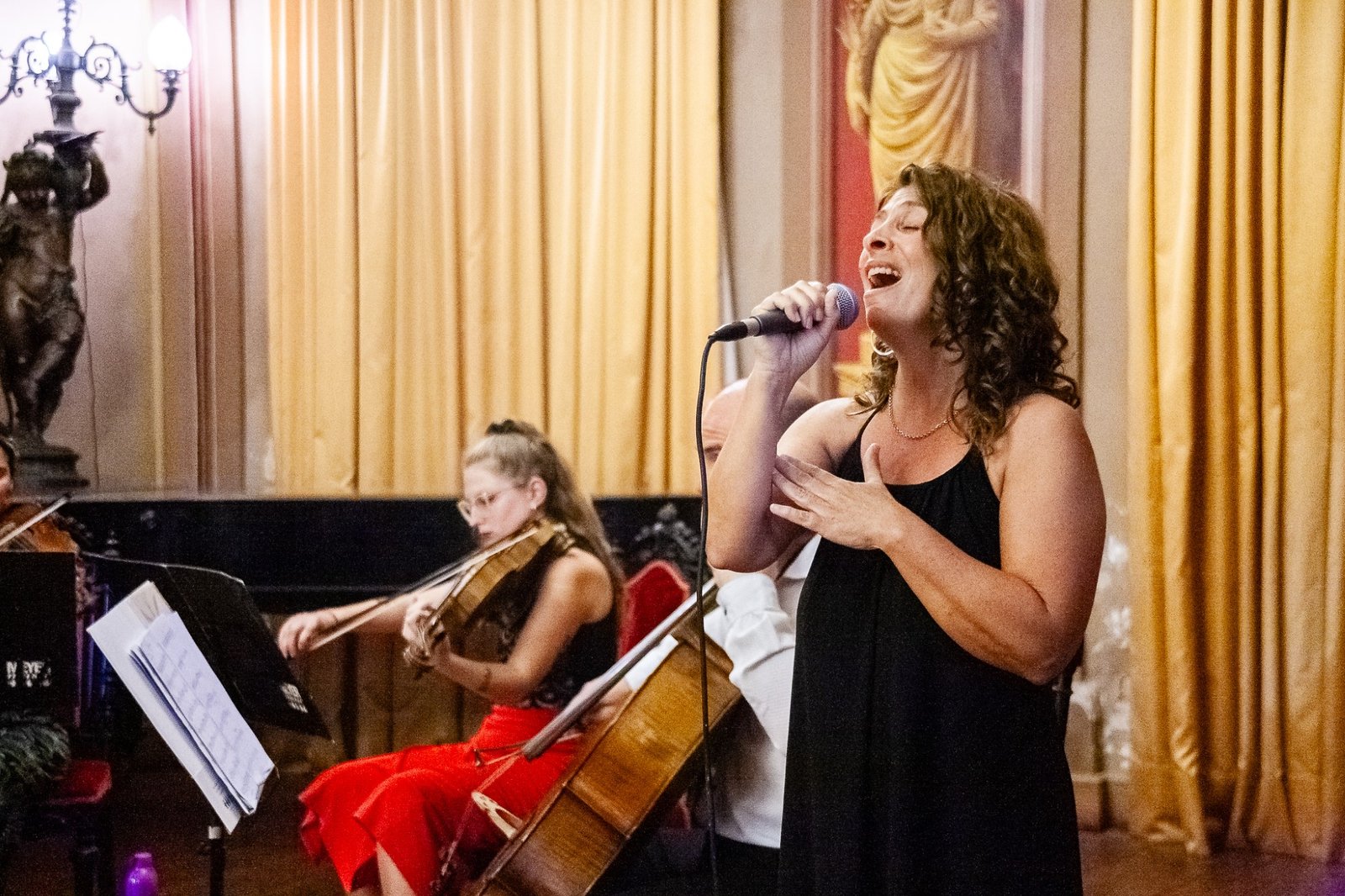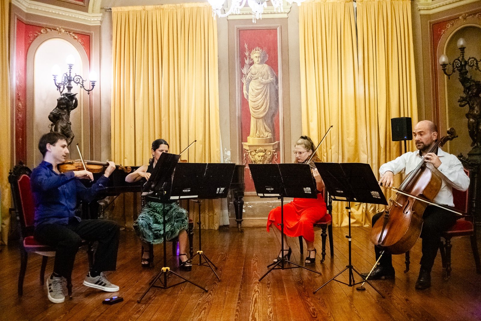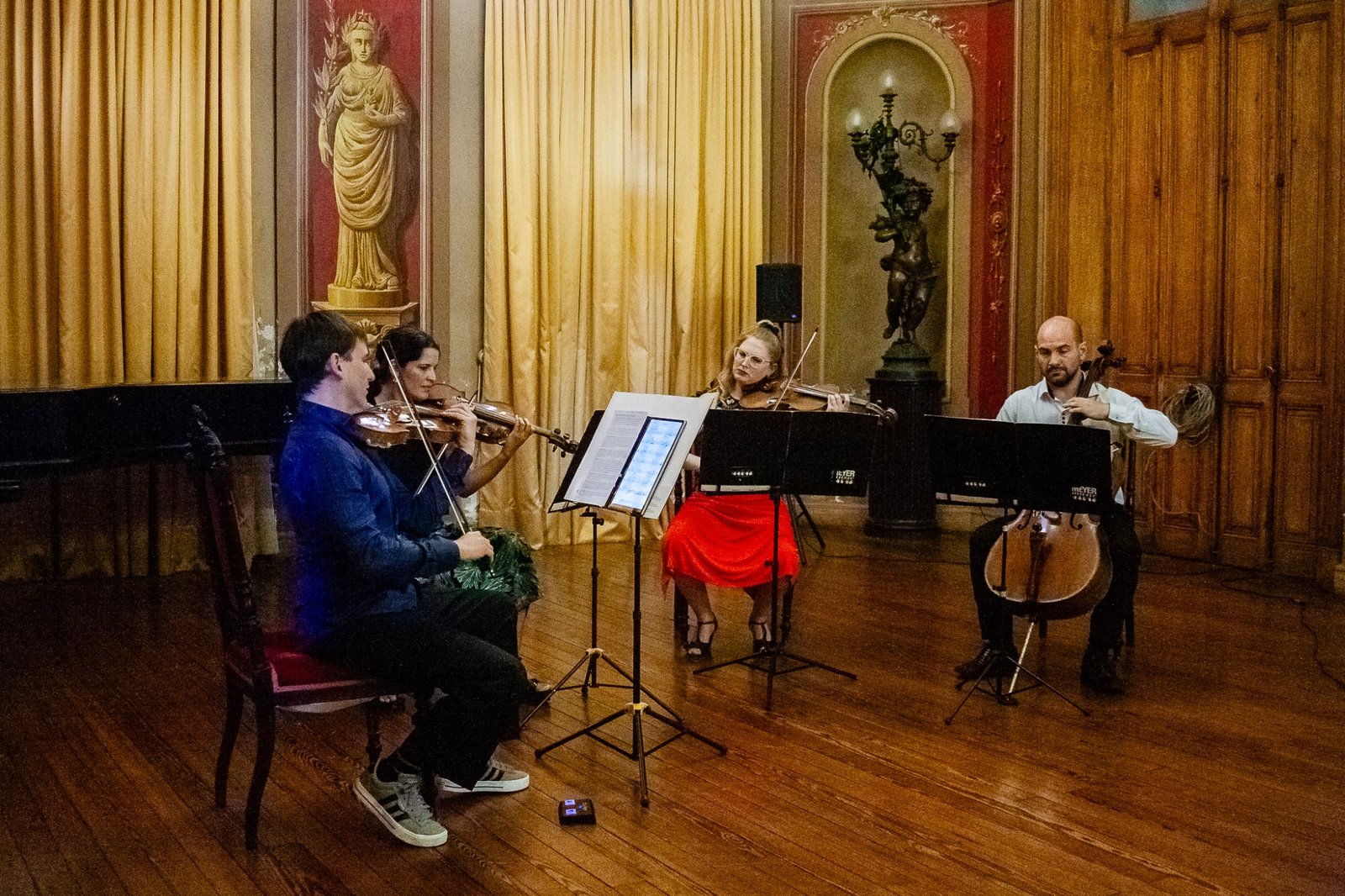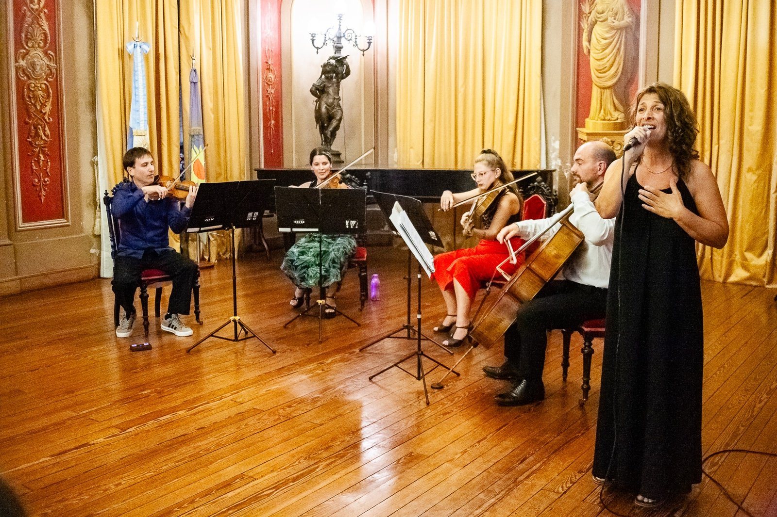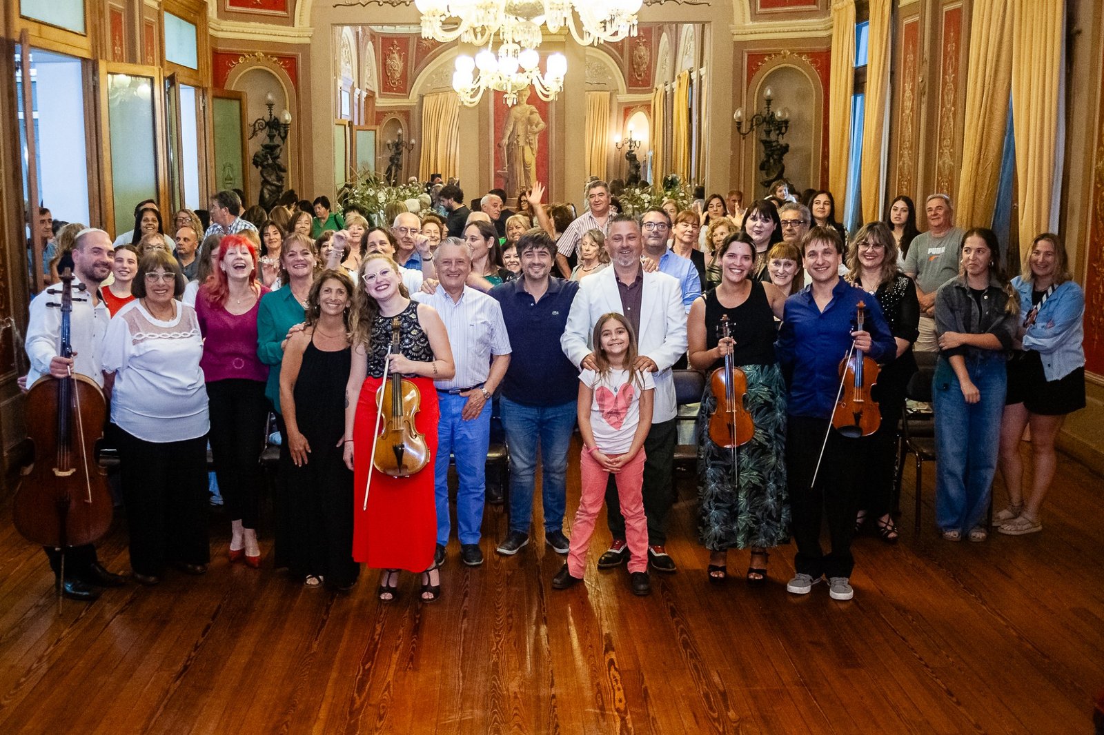 El Salón Rojo del Palacio Municipal estuvo colmado de público en otra velada especial de Sinfónicos en el Rojo, ciclo que promovió la llegada a Las Flores del eximio cuarteto de Cuerdas Cinerama.