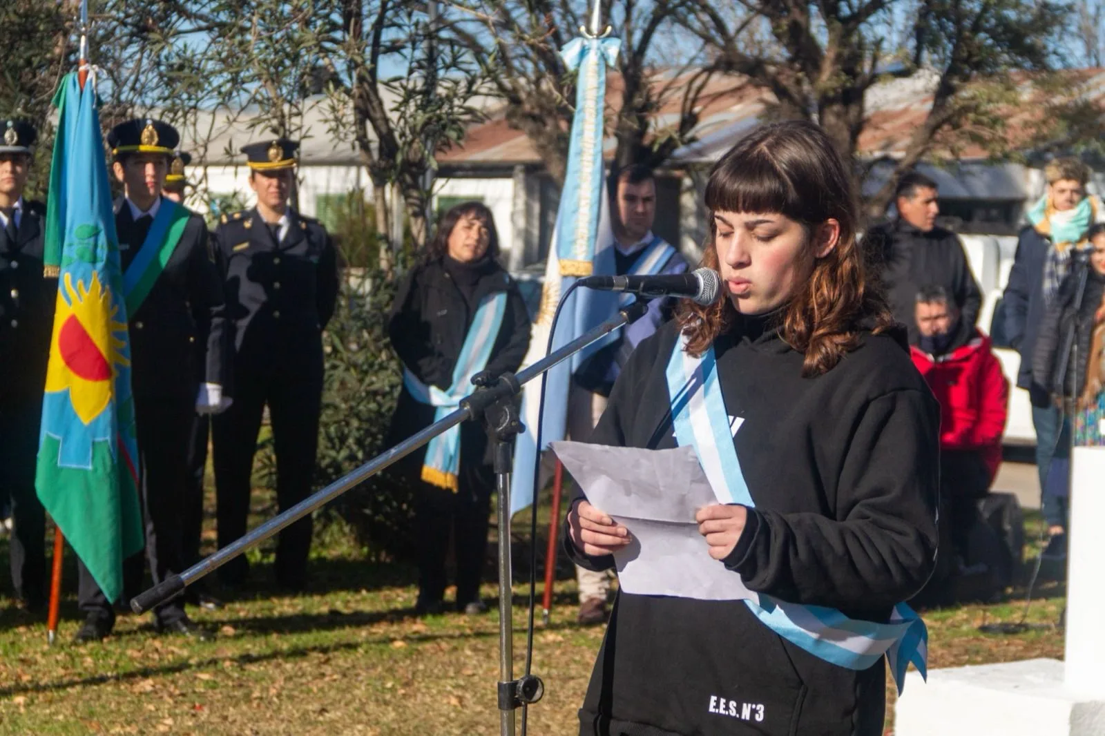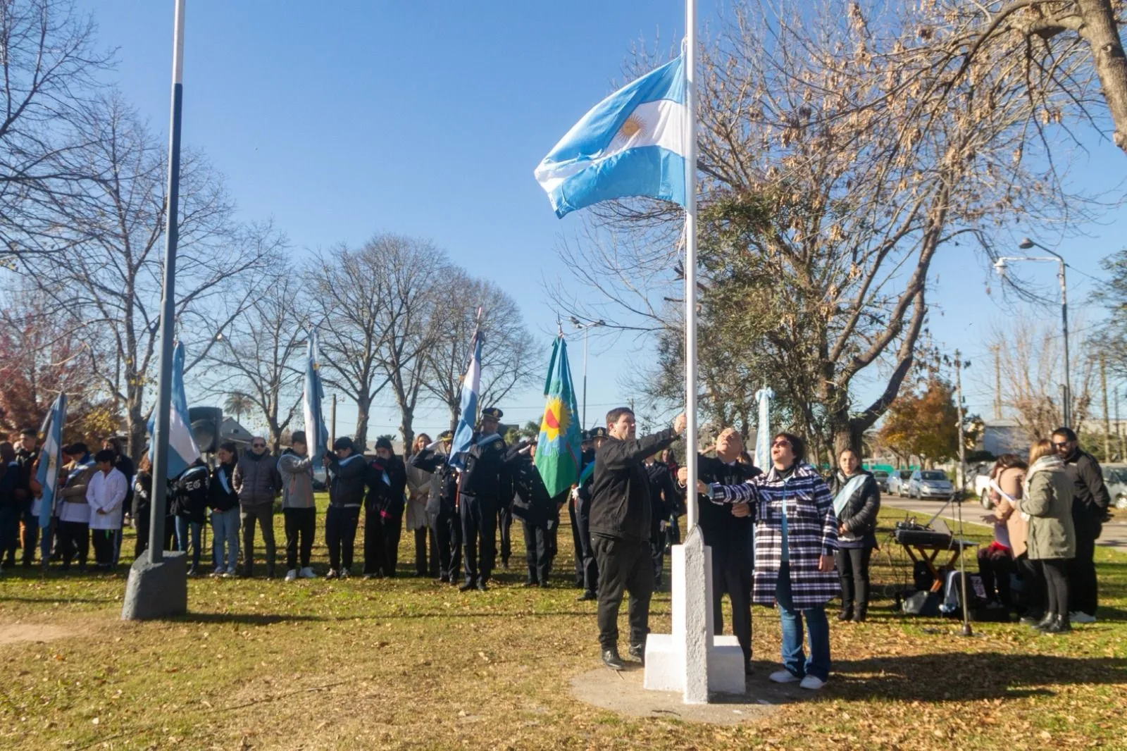 En la mañana del 25, se realizó el Acto Centralizado por el 214º aniversario de la Revolución de Mayo con la presencia de autoridades y representantes de comunidades educativas e instituciones intermedias de Las Flores.