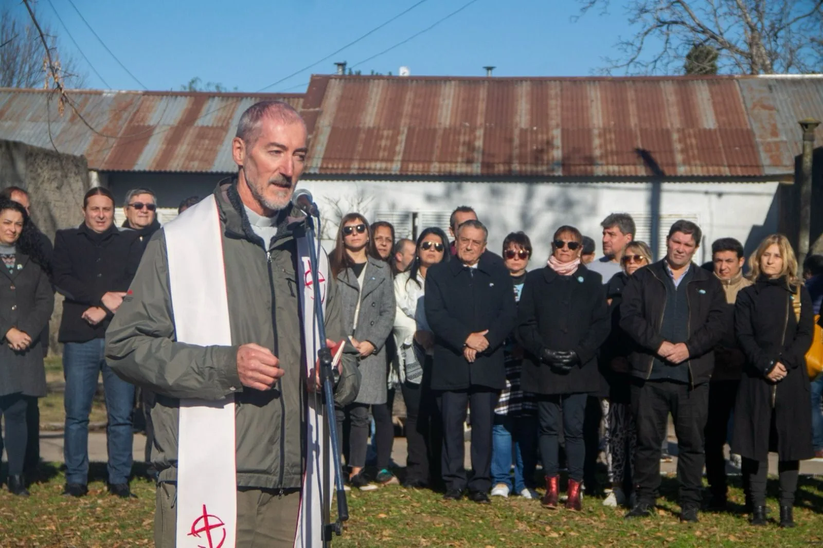 En el inicio, el intendente Alberto Gelené junto al presidente del Concejo Deliberante, Fabián Blanstein; y la presidenta del Consejo Escolar, Maricel Renero, izaron la Bandera Argentina en el mástil de la Plazoleta del Barrio 25 de Mayo. Fue así que se entonaron las estrofas del Himno Nacional y seguidamente el Padre Eduardo Campion efectuó una invocación religiosa.