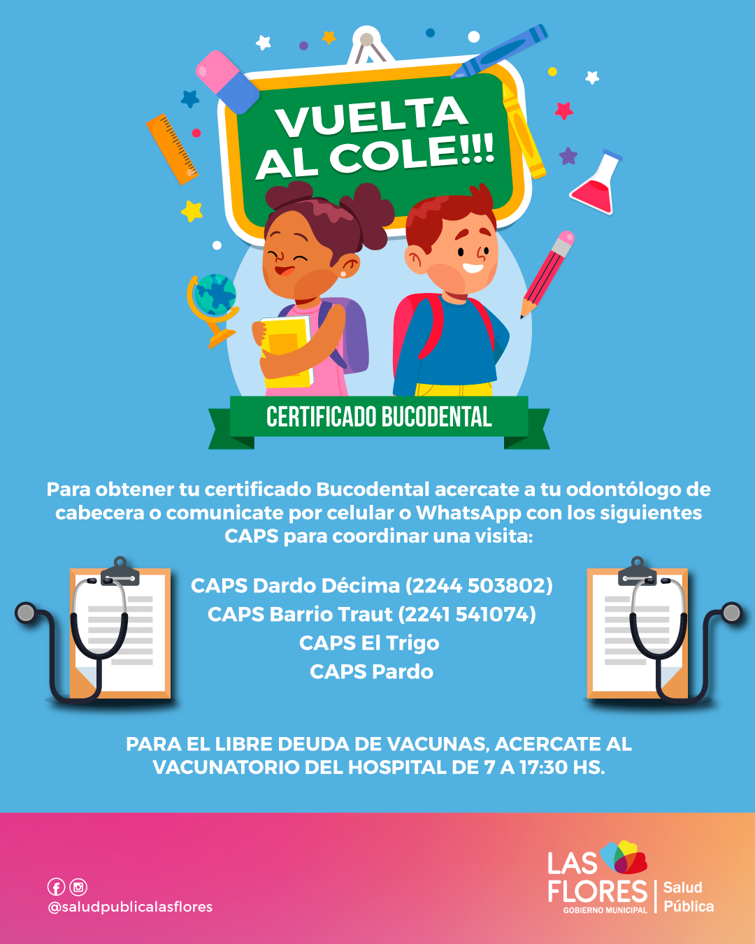 Recordá que también es válido la presentación de los certificados del pediatra o del odontólogo particular.