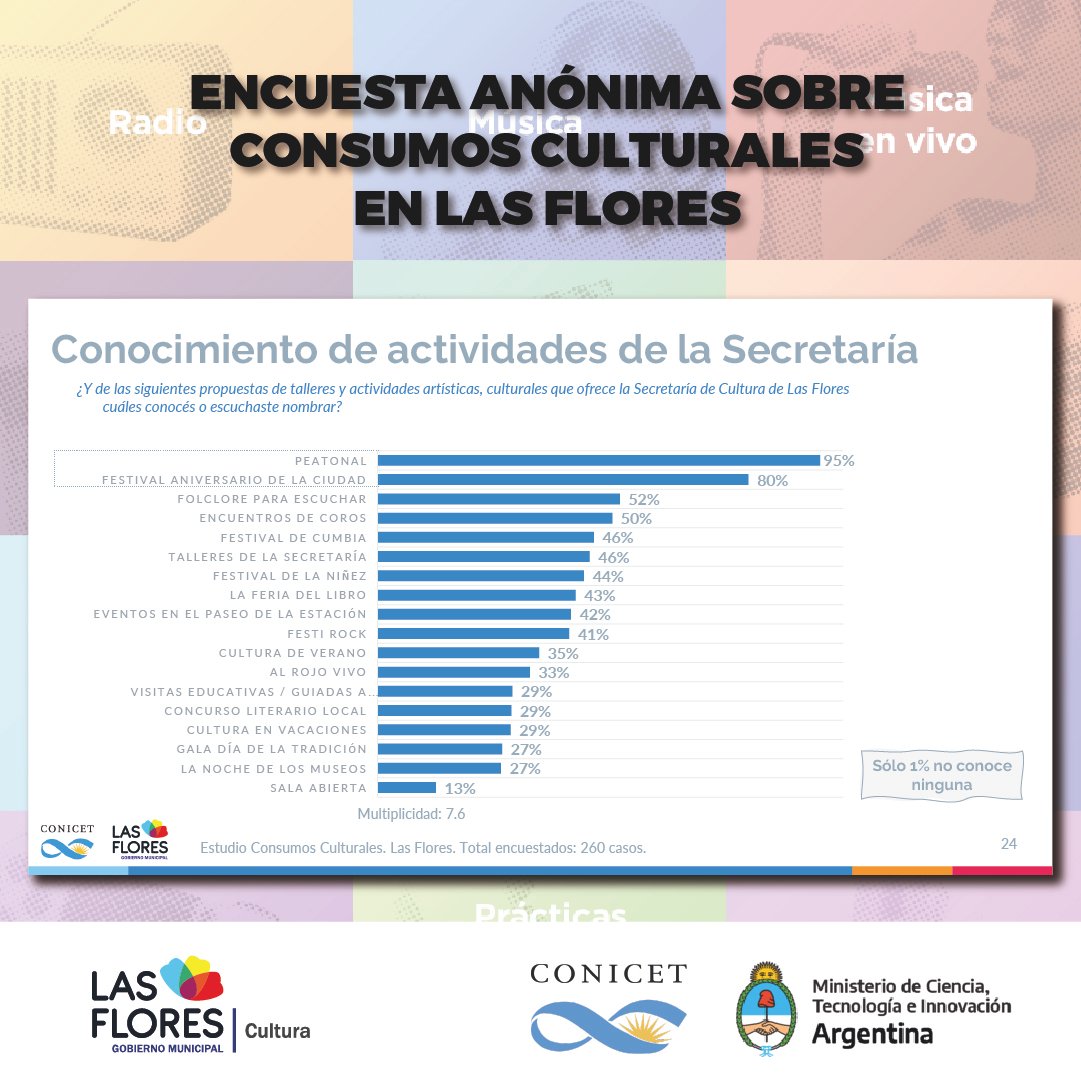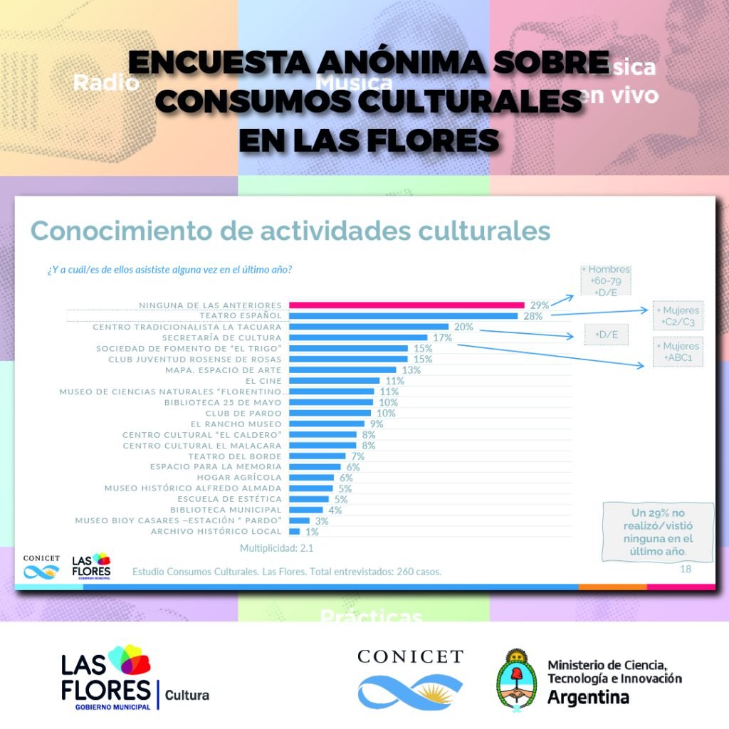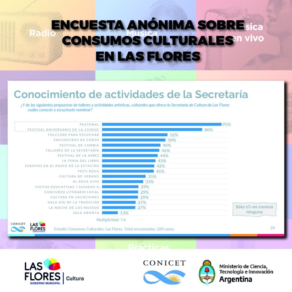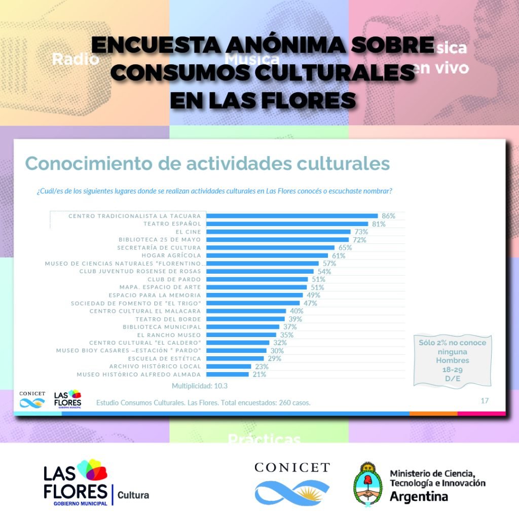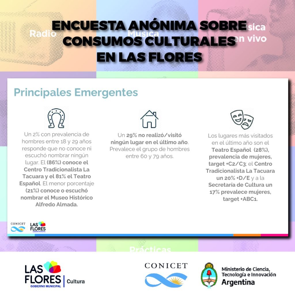 Además, detalló lo conseguido en los puntos muestra que fueron relevados, un hecho que derivó en números y porcentajes que sirvieron para certificar la elección de los florenses a la hora de interesarse o no por las propuestas culturales de la ciudad.