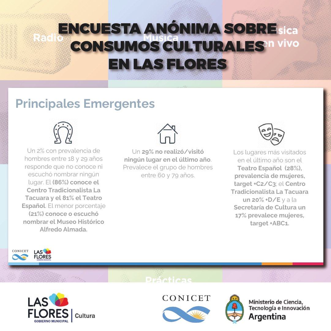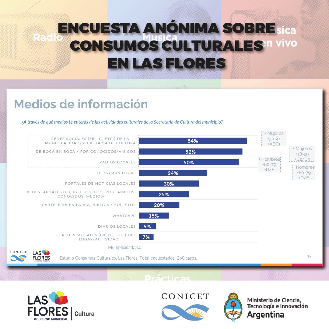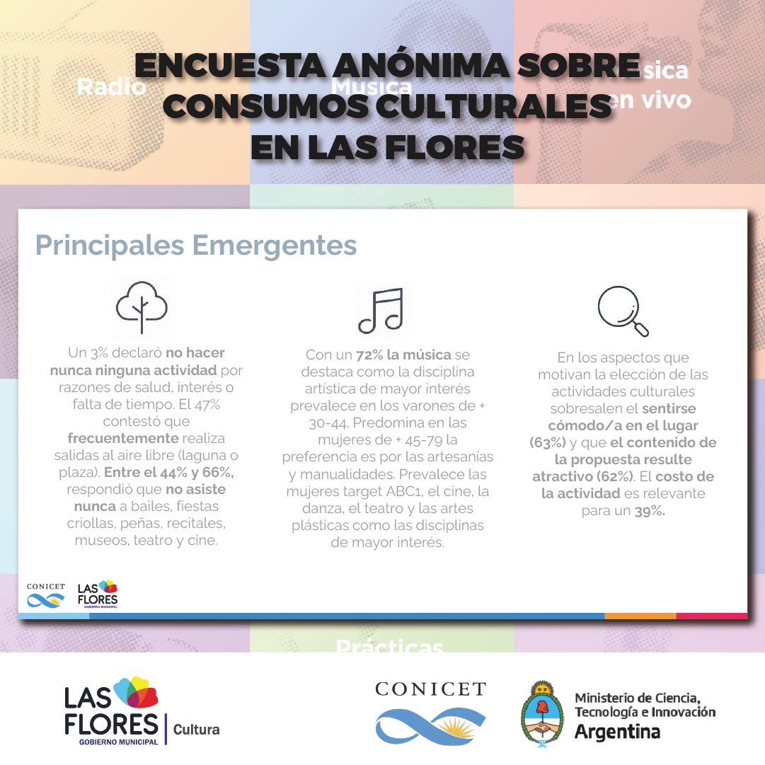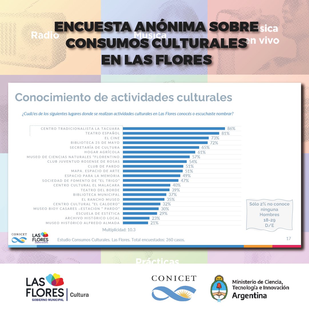 Además, detalló lo conseguido en los puntos muestra que fueron relevados, un hecho que derivó en números y porcentajes que sirvieron para certificar la elección de los florenses a la hora de interesarse o no por las propuestas culturales de la ciudad.