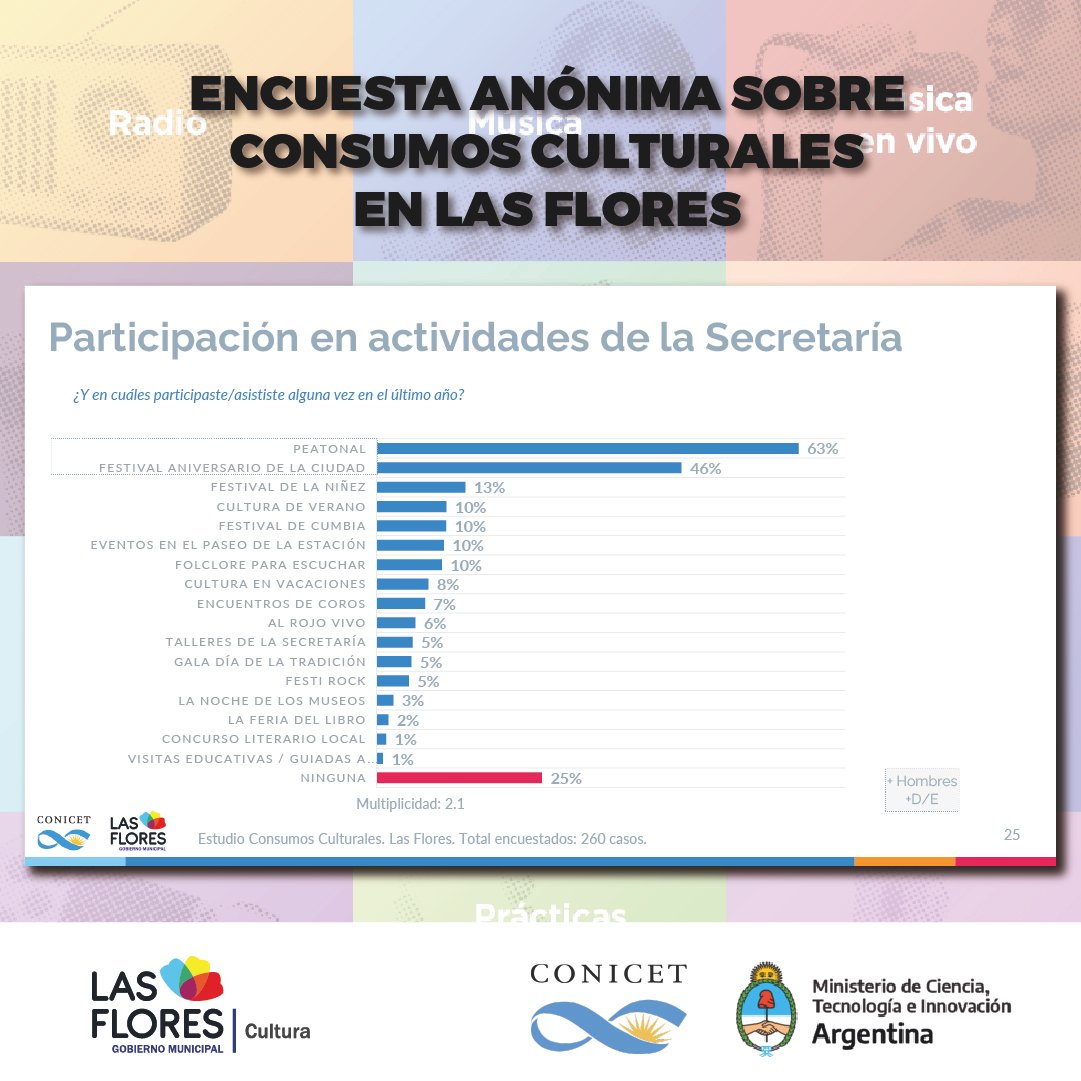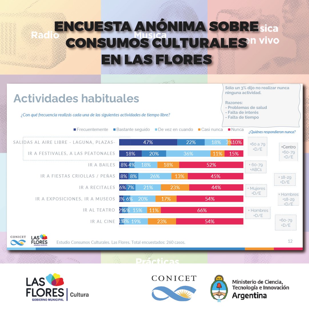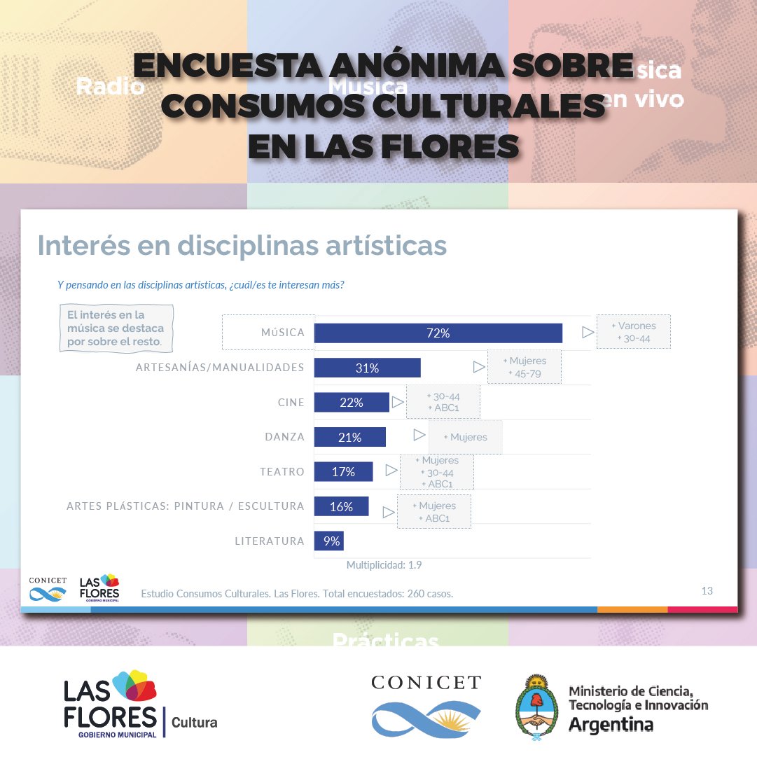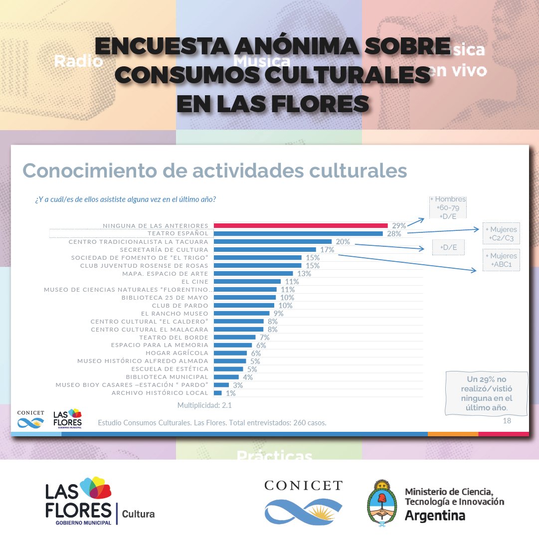 Además, detalló lo conseguido en los puntos muestra que fueron relevados, un hecho que derivó en números y porcentajes que sirvieron para certificar la elección de los florenses a la hora de interesarse o no por las propuestas culturales de la ciudad.